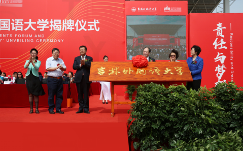 5月25日,吉林外国语大学校园一片喜庆气氛,2019中外大学校长论坛暨吉林外国语大学揭牌仪式隆重举行。