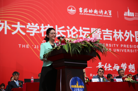 吉林省人大常委会副主任车秀兰发表致辞,高度评价了学校在吉林省高等教育事业的重要位置,以及为吉林省经济社会发展做出的重要贡献,希望学校早日建成国内领先、国际有一定影响的高水平应用型外国语大学,助力国家“一带一路”建设、东北亚开发开放和吉林全面振兴、全方位振兴。