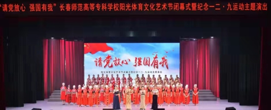 1935年的12月9日,一场轰轰烈烈的爱国运动在北平爆发了,一群觉醒的学生,一群爱国的青年,他们用热血守护着祖国。在“一二•九”运动86周年之际,长春师范高等专科学校于12月9日在学校艺术中心举办“请党放心 强国有我”阳光体育文化艺术节闭幕式暨纪念“一二·九”运动主题演出,师生齐聚一堂,将校园文化精品呈现给全校师生。大会由党委副书记方邡主持。党委副书记、校长姜国权宣读表彰决定。