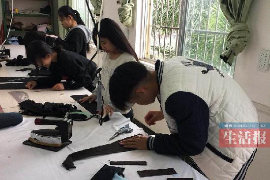 这会儿再聊起服装裁剪,二年级的男生们大多胸有成竹。一个高1.5米的人,得量好腰围、胸围、肩宽、背长等,再精确算出某种服装款式所需的布料;用手感觉出布料的厚度、质量,再判断这块布头能用在什么地方当内衬;用CDR进行服装设计,画起设计图也有点模样了……“回一趟家,感觉可不一样了。别的同学聊的都是机修、汽配,我没事儿就问妈妈喜欢什么样的衣服,我要给她做一件。”一位二年级的男生告诉记者,他自己正在悄悄物色布料,打算偷偷拿了老爸的穿衣尺寸,给爸爸做一条西裤,“做好了带回去送给他,算是个惊喜”。