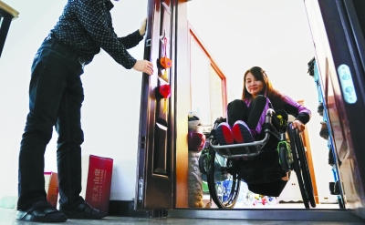 隋毅将电动车头组装到轮椅前,现在她可以自己一个人出门乘坐地铁。