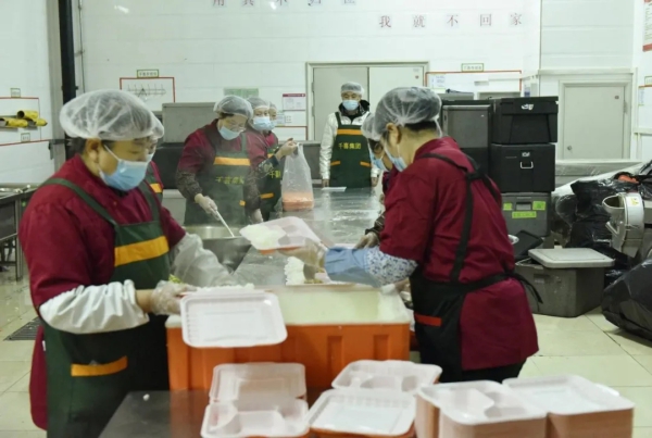 学校食堂贴心暖心,做出了饭菜AB套餐供大家选择。食堂员工每天为大家派送盒饭,充分保障了全校师生的三餐供应。